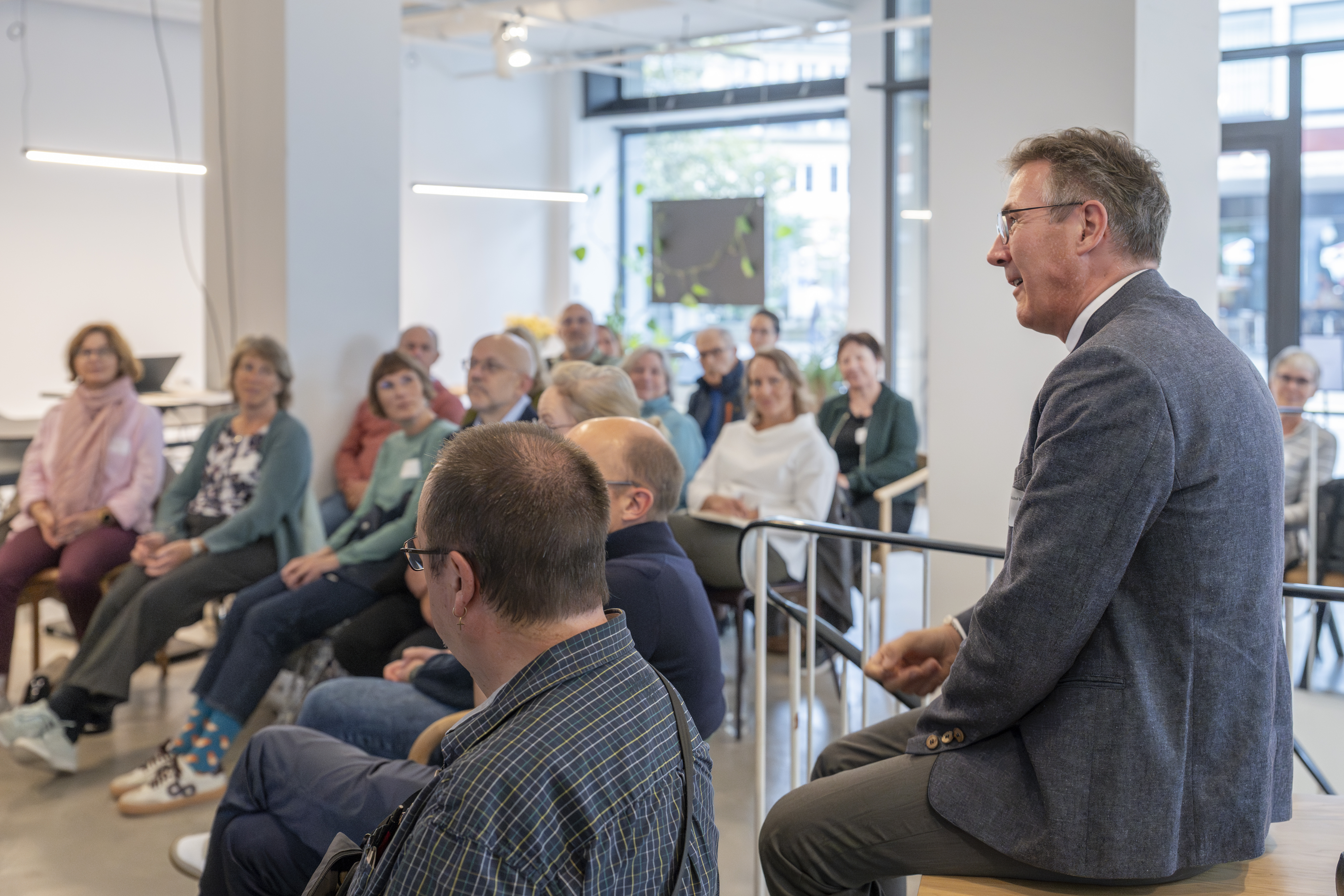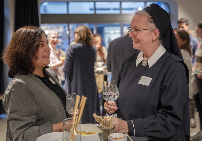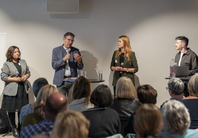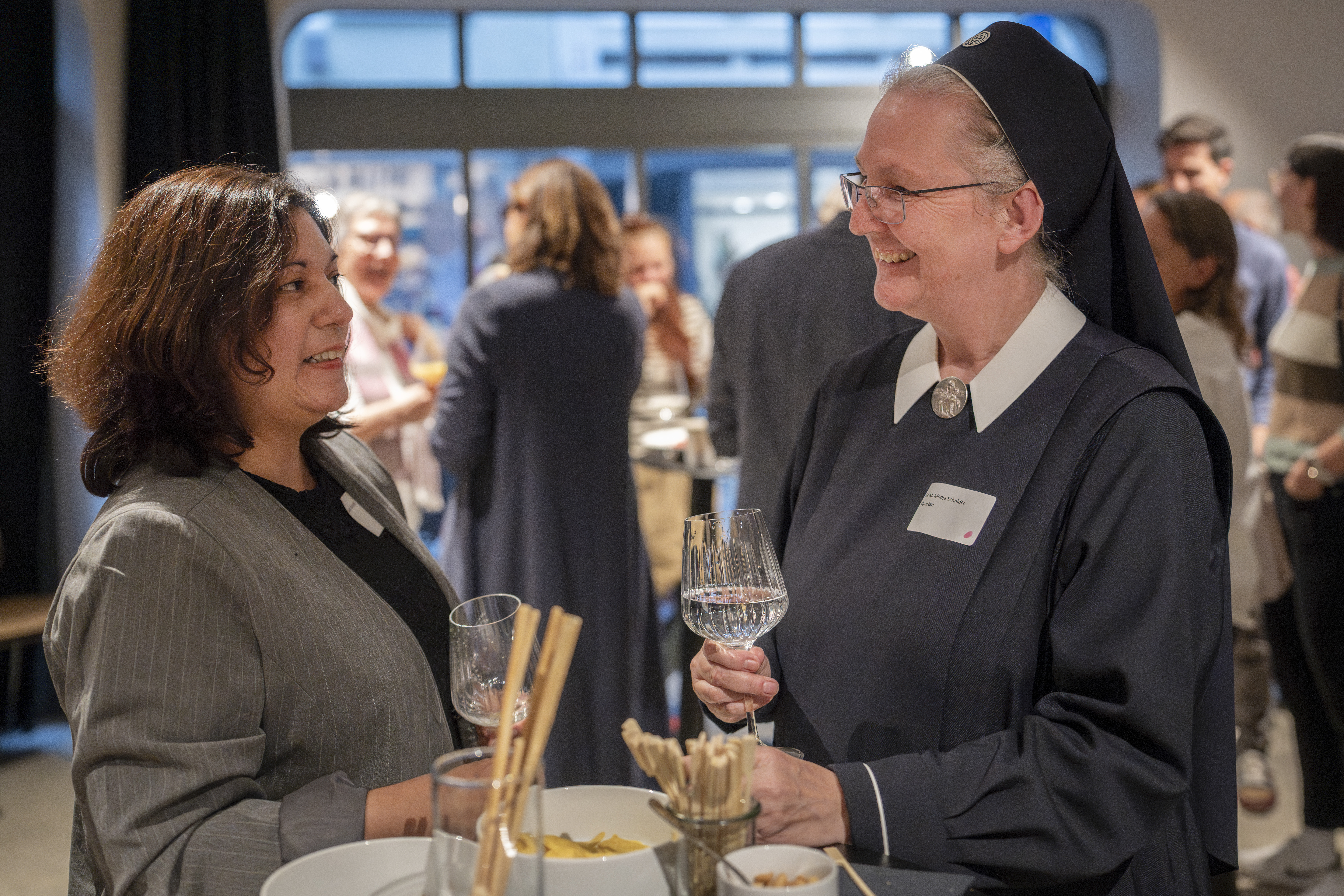 An der Podiumsdiskussion stellten sich Isabel Vasquez von Migratio, Claudia Vetsch von der Daju (Diözesanen Arbeitsstelle für Jugendpastoral im Bistum St.Gallen) und Bischof Beat Grögli den Fragen von Redaktionsleiter Stephan Sigg. «40 Prozent der Gläubigen haben Migrationshintergrund, für viele ist Deutsch nicht Muttersprache», hielt Isabel Vasquez, Nationaldirektorin von Migratio, eine Dienststelle der Schweizer Bischofskonferenz, fest. Oft höre sie, dass sich Pfarreien schwertun, mit Missionen und Anderssprachigen in Kontakt zu kommen. «Da braucht es manchmal Geduld und auch den Mut zu Experimenten.» Sie illustrierte das mit einem einfachen Beispiel: Eine Pfarrei verschickte den Brief mit dem Absender der Spanier-Seelsorge und stiess bei den Spanischsprechenden plötzlich auf Resonanz. Isabel Vasquez ermutigte zu ersten Schritten: «Nicht einfach nur Anlässe der Missionen zu besuchen, sondern auch im normalen Alltag mit ihnen Kontakt aufnehmen und Einblicke in ihren Alltag bekommen.» Eine wichtige Grundlage sei Fremdsprachenkompetenz. «Aber genauso wichtig ist es, im Alltag auf eine einfache, gut verständliche Sprache zu versetzen. Die Texte möglichst kompakt halten, Aufzählungen statt endlose Sätze». Der St.Galler Bischof zeigte sich gewohnt offen und volksnah. Mit Stephan Sigg sprach er von seinen Erfahrungen über eine Kommunikation, die die Menschen erreicht. Er achte immer darauf, authentisch, positiv, fröhlich, reflektiert und ermutigend zu sein. «Jeder Mensch lebt von dem, das ihn freut.» Bischof Beat Grögli ging weiter auf die Spannungen auf der Welt ein. «Es ist eine Bubble-Kultur entstanden. Diese müssen wir aufbrechen. Wir müssen auch unterschiedliche Meinungen zulassen.» Claudia Vetsch vertrat die Sicht der jungen Menschen. Mit dem Projekt Churching.ch hat die Daju ein Angebot für ebendiese Zielgruppe geschaffen – keine einfache Zielgruppe, wie auch Redaktionsleiter Stephan Sigg weiss. «Junge suchen Menschen mit Ecken und Kanten, mit Profil», so Claudia Vetsch. «Wir müssen uns zeigen, ein vis-a-vis sein und von den eigenen Erfahrungen sprechen. So können wir nahbar sein für die Jungen.»