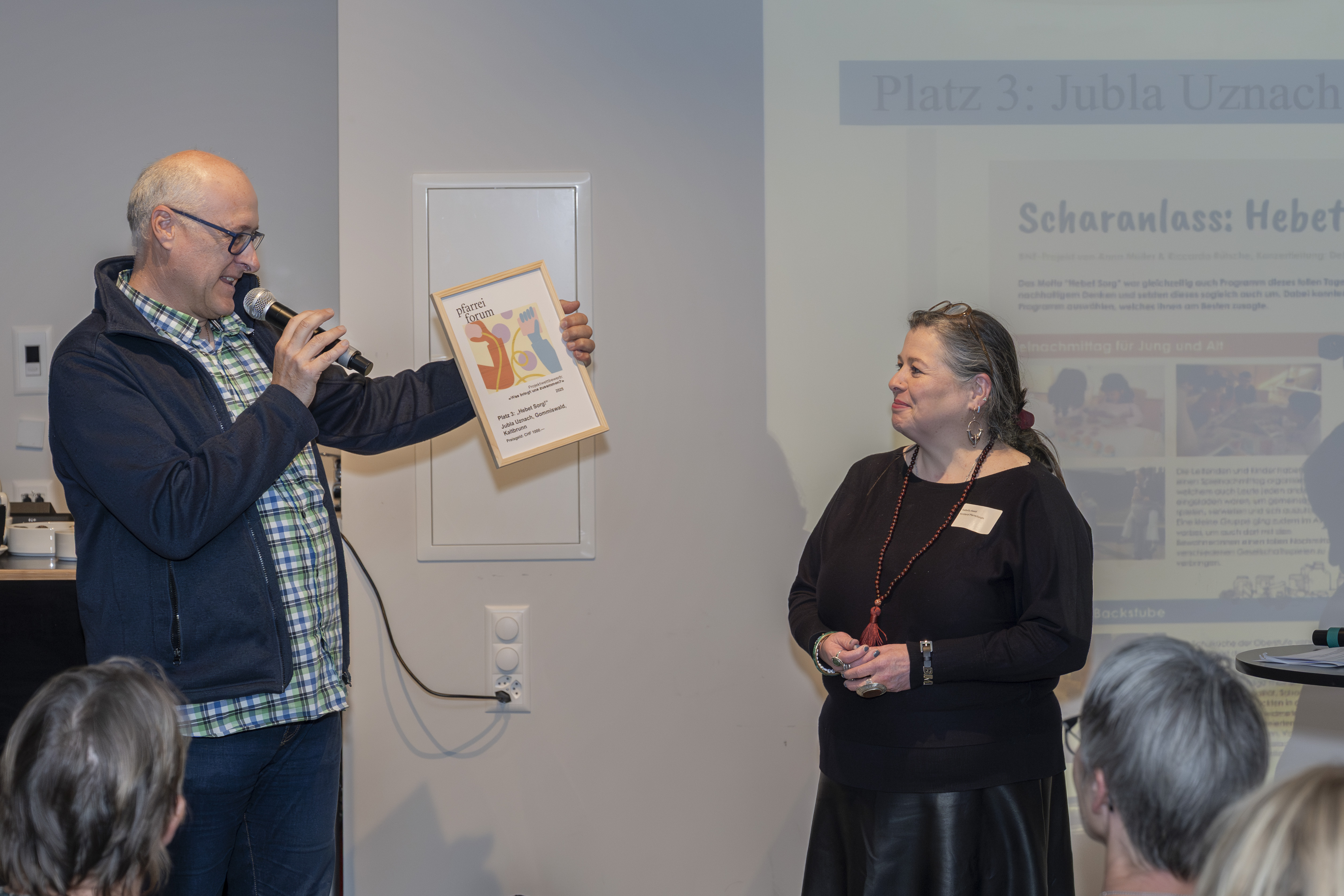 Im Rahmen des Jubiläums hatte das Pfarreiforum im Frühjahr den Wettbewerb «Was bringt uns zusammen?» initiiert. Gesucht waren Projekte, die die Gesellschaft zusammenbringen und gemeinschaftsstiftend sind. Über 20 Gruppen, Vereine, Einzelpersonen und Institutionen nahmen teil. Am Dienstag wurden schliesslich die drei Gewinner des Wettbewerbes bekannt: Den ersten Platz holte das Projekt «Chomm, vezöll doch!». Dieses hat seinen Ursprung in den sieben Frauengemeinschaften im Kanton Appenzell Innerrhoden, der Bäuerinnen- und Landfrauenvereinigung AI und der Seelsorgeeinheit Appenzell und das Ziel, gemeinsam über psychische Gesundheit sprechen. Das Projekt beinhaltet regelmässige Informations- und Gesprächsabende an verschiedenen Orten im Kanton Appenzell Innerrhoden. Luzia Mock, die den Preis stellvertretend für alle Verantwortlichen entgegennahm, wusste nicht von der Auszeichnung. «Ich bin ein wenig überrumpelt», sagte sie sichtlich erfreut über den Hauptpreis von 3000 Franken. Ebenfalls ausgezeichnet wurde das Projekt «Cup of Color», das durch Kunst Menschen zusammenbringen und Verbindungen schaffen soll. Die Organisation bemalt weltweit zusammen mit Menschen verschiedener Hintergründe Wände und lebt dafür etwa in Flüchtlingsheimen oder Bordellen. Im Rahmen des neuen Projekts «We paint hope - in Jemen!» werden seit November 2024 bis Frühjahr 2027 20 Schulen, Spitäler und Wasserspeicher in gemeinschaftliche Wandkunstbilder gestaltet. Die Mitglieder von «Cup of Color» begleiten jemenitische Kunstschaffende bei der Realisierung der Wandbilder. Über die Auszeichnung und das Preisgeld von 2000 Franken freuen sich die Mitglieder. «Es ist eine Ermutigung, mehr über unsere Arbeit zu erzählen», so Luamar Zwahlen. Als drittes Projekt wurde «Hebet Sorg» ausgezeichnet. Dabei handelt es sich um eine Initiative der drei Jublas Gommiswald, Uznach und Kaltbrunn, die einen Scharanlass zum Thema Nachhaltigkeit durchgeführt haben. Die Drittplatzierten durften sich über ein Preisgeld von 1000 Franken freuen. Das Pfarreiforum wird die Gewinnerinnen und Gewinner in einer der kommenden Ausgaben portraitieren und in naher Zukunft medial begleiten. Die Idee zum Projektwettbewerb hatten die Verantwortlichen nicht ohne Grund. Redaktionsleiter Stephan Sigg erklärt: «Auch das Pfarreiforum hat vor 30 Jahren als kleine Idee von einigen wenigen Personen gestartet. Heute sind fast alle Kirchgemeinden im Bistum St. Gallen dabei und erhalten unsere Zeitschrift. Das bedeutet, dass das Pfarreiforum über die Regionen hinaus verbindet und eine gemeinsame Identität schafft.»