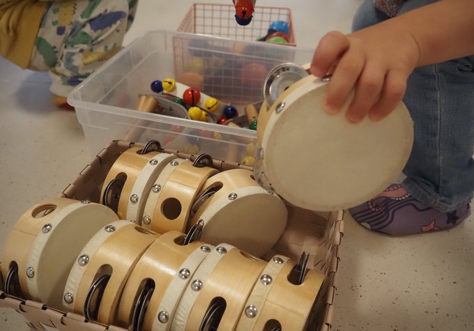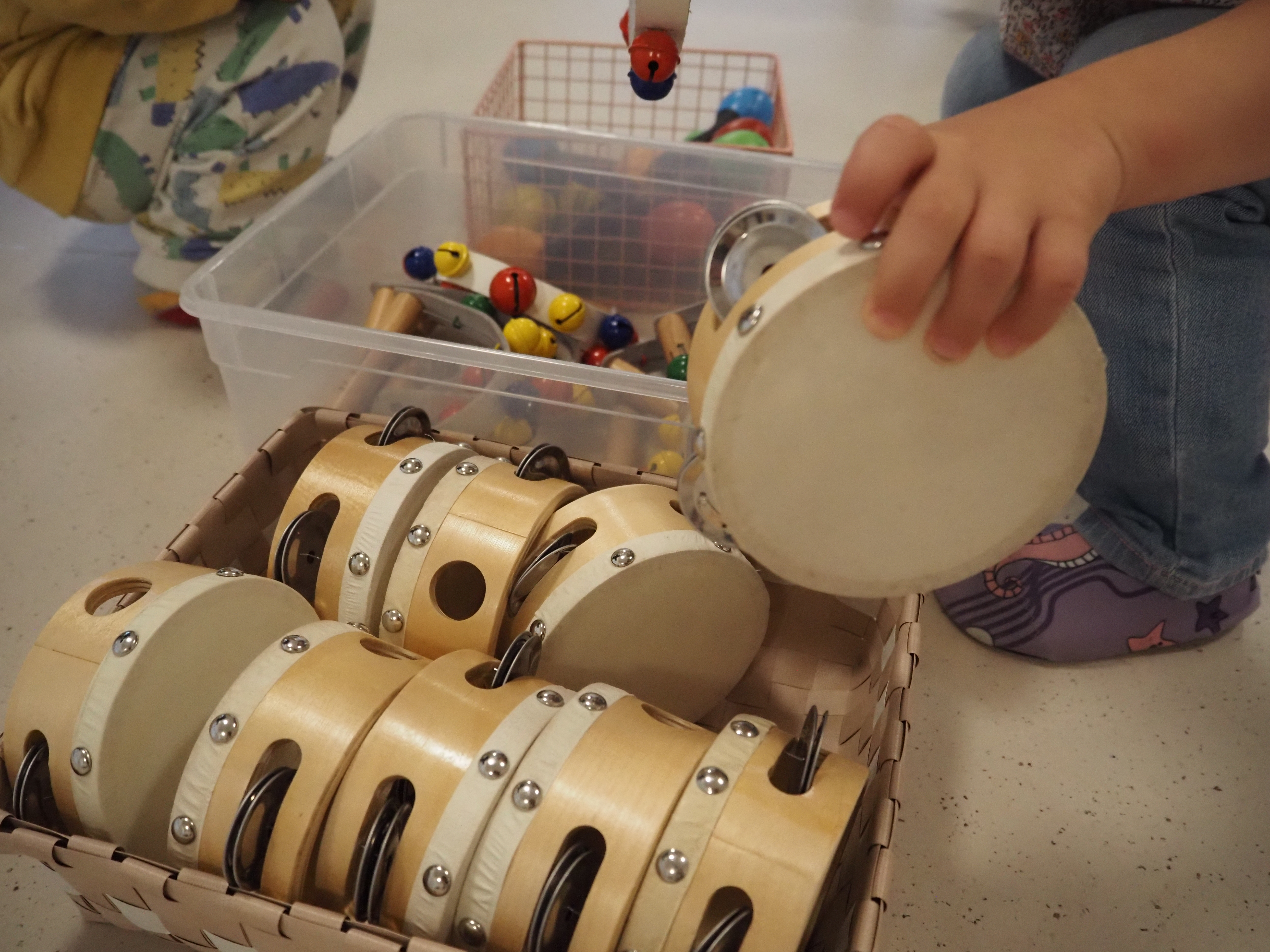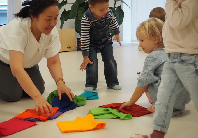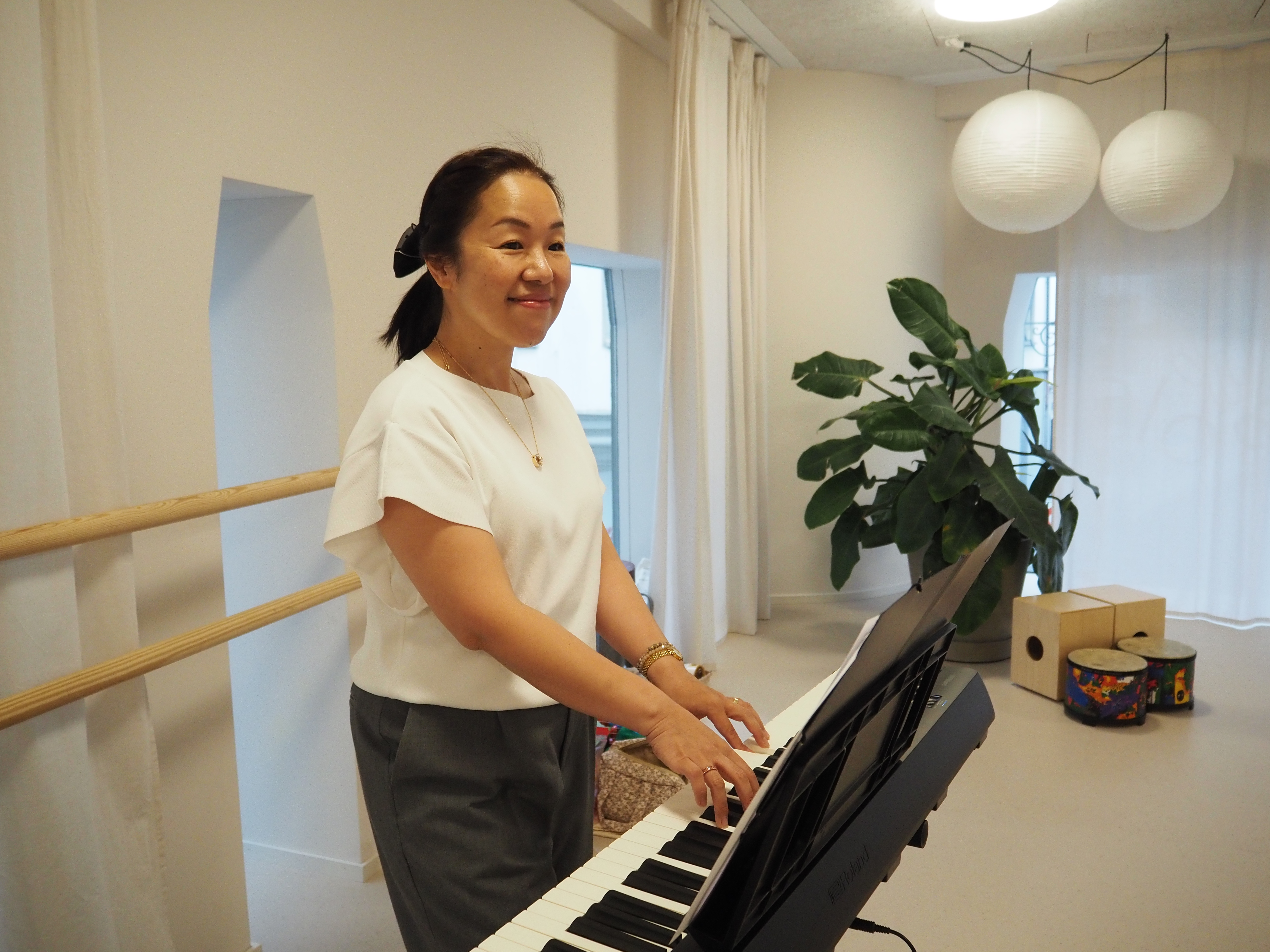 Musik soll laut Hiroko Haag unsere Sinne ansprechen. So wird im Eltern-Kind-Singen auch getrommelt, getanzt, geschmeckt und gefühlt. Die Kinder verstecken sich unter bunten durchsichtigen Tüchern. Sie wählen zwischen Rasseln und Trommeln und werden zu einem wilden Orchester. Sie lassen Schmetterlinge aus Papier durch die Luft fliegen. Sie beobachten, wie Hiroko Haag ein Tischtusch auf dem Boden ausbreitet und ein Brett mit einem Käsesandwich und einem Apfel aus Holz sowie eine Kaffeetasse daraufstellt. Dann kommt eine kleine Maus und stiehlt den Käse. Das Ganze geschieht getreu dem Kinderreim «I üsem Hüsli häts schrecklich viel Müsli». Dann ist es Zeit, in den «Musikzug» nach Hause zu steigen. Die Kinder wickeln sich bunte Seile um den Bauch und ziehen ihre Eltern und Grosseltern durch das Zimmer. Die Dreiviertelstunde ist um. Die Kinder schlüpfen in ihre Schuhe und in ihre Jacken. Draussen im Flur wartet schon die nächste Gruppe aufs Eltern-Kind-Singen: Mit lachenden Gesichtern und freudiger Ungeduld.