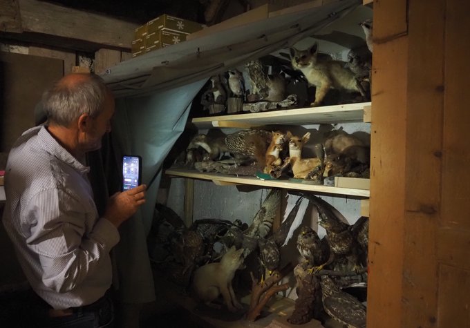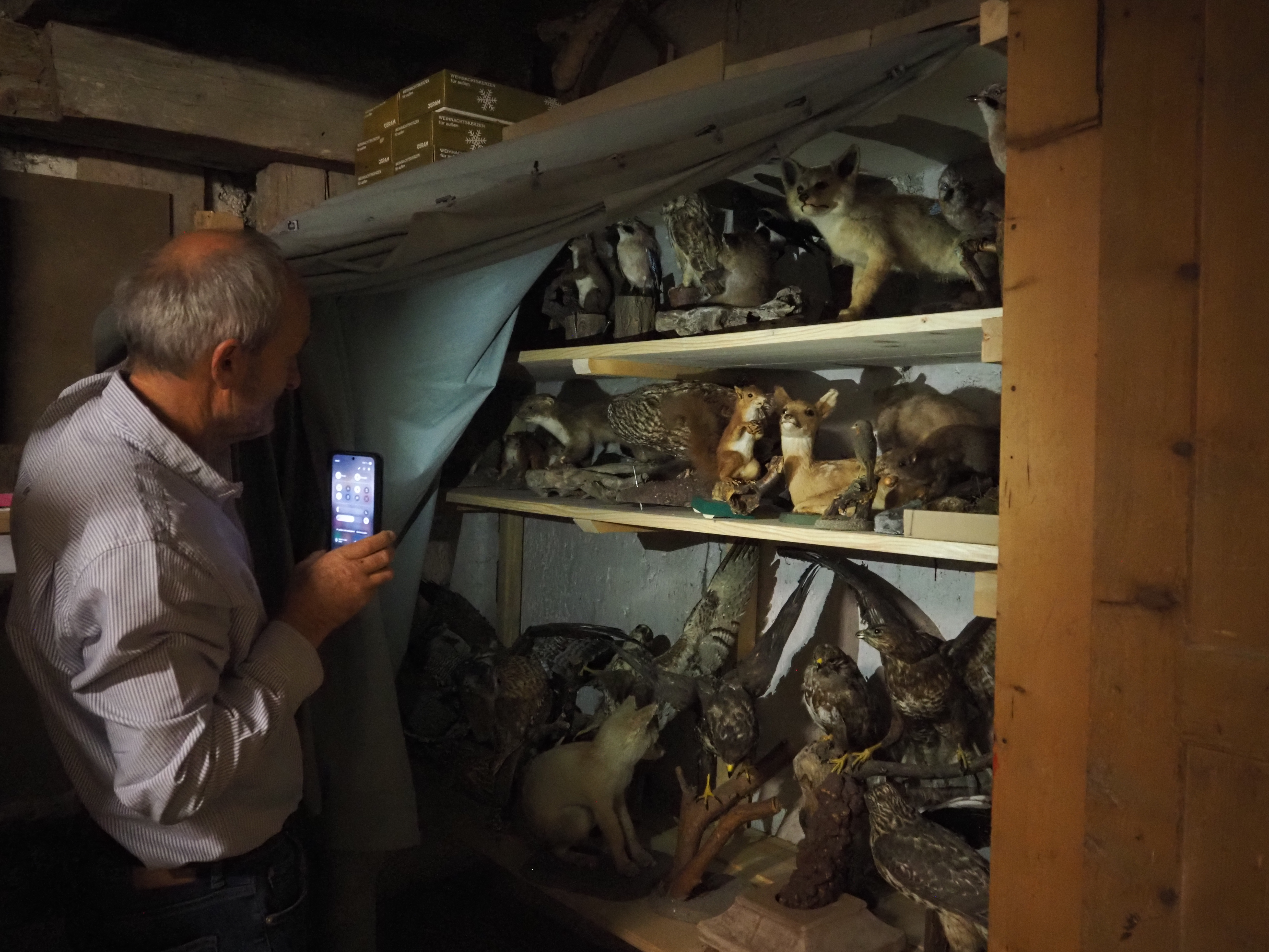 «Alles nur morsche, verwurmte Ware»: So hat Rolf Böni gedacht, als er 2016 zusammen mit seinem Vorgänger Beat Gmür, dem Initianten und Architekten der Ammlerkrippe, mit dem Krippenbau begonnen hat. 1997 entwickelte dieser zusammen mit dem damaligen Pfarrer und vielen Helferinnen und Helfern aus Amden das Konzept und die kreative Umsetzung. «Jetzt mach einfach mal», habe Gmür ihn angewiesen, wenn er in Altholz und Wurzelstöcken eben nur Unbrauchbares gesehen habe. «So haben sich über die Jahre ein Gefühl und ein Blick für diese ganzen Naturmaterialien entwickelt und heute bin ich absolut fasziniert», sagt Rolf Böni. Er führt hinauf in den Kirchturm. In einem Regal hat er dort Disteln ausgebreitet. Sie brauchen Licht und Kälte, um haltbar zu bleiben. In einem dunklen Nebenraum zieht er einen dicken Vorhang vor einem Regal zur Seite und leuchtet mit seinem Smartphone hinein. Füchse, Rehkitze, Eulen, Eichhörnchen und viele weitere ausgestopfte Tiere kommen zum Vorschein. Für sie alle findet Rolf Böni jeweils einen Platz in der Krippenlandschaft. «Alle diese Tiere sind bei Unfällen oder deren Folgeverletzungen gestorben, wurden von Jägern und Privatpersonen gefunden und stammen aus deren Sammlungen», sagt er. «Heute will kaum jemand noch ausgestopfte Tiere zu Hause haben. Aber in der Ammlerkrippe finden sie alle einen Platz und vor allem die Kinder haben ein Riesenfreude daran, nach den Tieren Ausschau zu halten.» Ein besonderer Schatz sind auch die 19 im Schnitt einen Meter grossen, handgeschnitzten Krippenfiguren aus dem Südtirol. Sie lagern unten im Kirchenraum im ehemaligen Beichtzimmer. Bald 30 Jahre alt, haben sie mittlerweile einen schönen Sammlerwert.