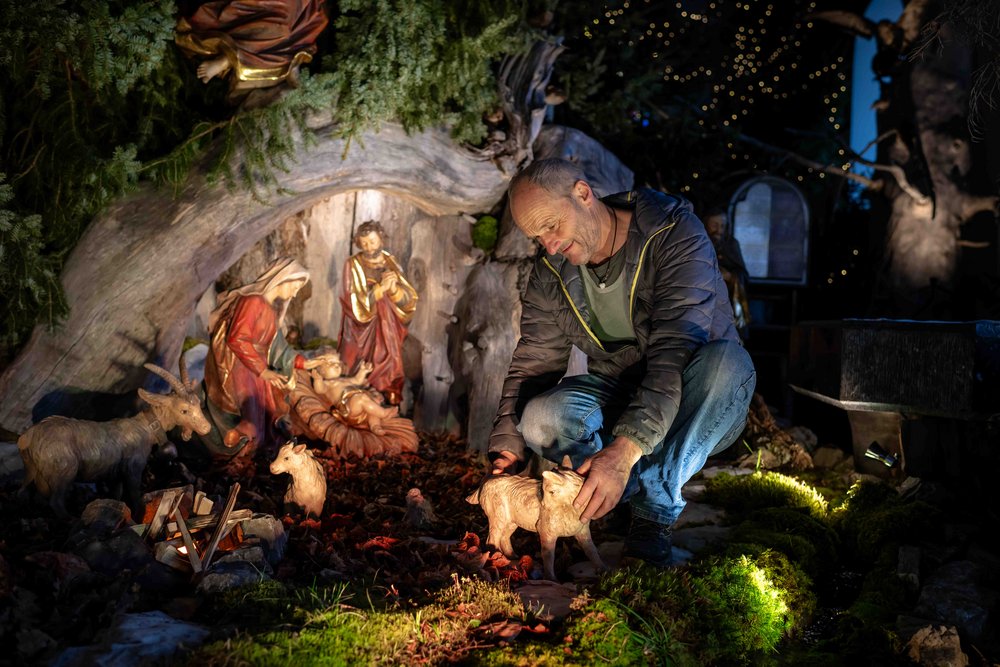 Weit über 10 000 Besucherinnen und Besucher sind es, die die Krippe im Zeitraum zwischen 24. Dezember und dem letzten Januarwochenende jedes Jahr besuchen. Davon profitiert das ganze Dorf. Rolf Böni führt zum überdachten, öffentlichen Parkplatz gegenüber der Kirche. Im hinteren Teil hat er sein Holzlager eingerichtet. Aus alten Brettern hat er einen Stall für die Krippenfiguren gezimmert. «Finde ich in der Natur keine geeignete Wurzel, die ich als Krippe nutzen kann, zimmere ich jeweils einen Stall», sagt er. Die Arbeit liegt ihm. Er ist gelernter Schreiner. In seinem Leben hat er aber vieles ausprobiert und als Lastwagenfahrer, Hausabwart, Poststellenleiter und Kundenberater bei einer Bank gearbeitet. In Amden aufgewachsen, hat er sich ausserdem als Kirchenpräsident engagagiert und sich zuletzt auf die Stelle als Mesmer beworben. «Ich suchte eine Arbeit, die näher bei den Menschen dran ist», sagt er und erzählt, wie es ihm zunehmend schwerer gefallen ist, in einem System zu arbeiten, in dem jene immer mehr bekommen, die bereits viel Geld haben, während jene vergessen gehen, die wenig oder nichts besitzen.