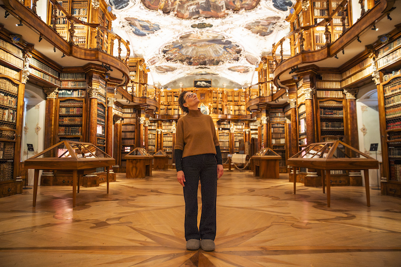 Die Ausstellungsgegenstände lassen einen in eine Welt eintauchen, die zwar Teil unserer Geschichte und Kultur ist, die wir aber kaum noch kennen. Sie zu betrachten, tut gut und schafft etwas Distanz zum oft hektischen Alltag. Für Elke Larcher hat dieses Eintauchen auch eine persönliche Dimension. Sie arbeitet seit dreieinhalb Jahren, in der Stiftsbibliothek. «Jedes Mal aufs Neue spüre ich, wie sehr es mich berührt, wenn ich den Barocksaal betrete. Das Herz weitet sich, Ruhe und das Gefühl von Demut machen sich breit», sagt sie. Schönheit zu sehen, zu erleben und zu fühlen, tue der Seele gut. «Wenn wir uns öffnen und etwas auf uns wirken lassen, wenn wir den Kreislauf von Passivität, vom alltäglichen Hamsterrad, in dem wir oft gefangen sind, durchbrechen, dann löst das ein Gefühl des Ankommens und der Gelassenheit aus und bringt etwas in Bewegung.»