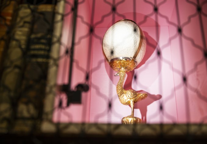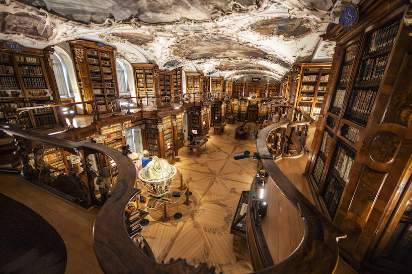 Die Architektur der Stiftsbibliothek hält die Besucherinnen und Besucher zum Durchatmen an. Der Barocksaal ist kein Durchgangsraum, sondern ein Raum, der sich zum Verweilen eignet. Von der Eingangstür aus ist er nicht einmal richtig zu sehen. Nur wer um die Ecke biegt, befindet sich in dem Saal mit seinen besonderen Proportionen, der Stille und Ordnung ausstrahlt. Dort hetzt man nicht hindurch, sondern verweilt, etwa vor dem Regal mit dem bereits erwähnten Strausseneipokal: Ein kleiner, vergoldeter Strauss trägt auf seinem Kopf ein echtes Straussenei, dessen Oberfläche mit Schnitzereien verziert ist. Im Schnabel hält der Strauss ein Hufeisen. «Früher glaubte man, Strausse könnten Eisen fressen, was wiederum vor Vergiftungen schützen sollte», sagt Elke Lacher.