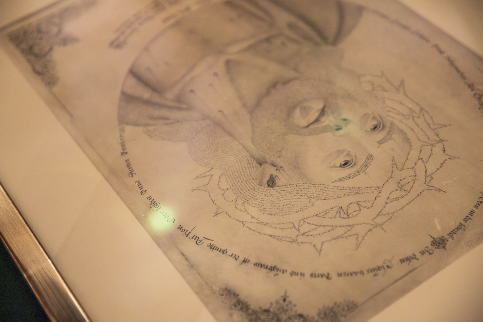 Faszinierend ist auch das skizzenartige Porträt von Jesus mit Dornenkrone in einer der Vitrinen. Erst bei genauem Hinschauen fällt auf, dass es sich um eine Mikrografie handelt und Dornenkrone, Bart, Augenbrauen und Haare aus einer winzig kleinen Miniaturschrift bestehen, die den Leidensweg und das Sterben von Jesus beschreibt. Ein paar Regale weiter ist ein magischer Becher aus Steinbockshorn ausgestellt. Genau wie der Strausseneipokal hatte auch er den Ruf, Gift neutralisieren zu können. «Diese Gefässe zählten zu beliebten Objekten in den Kunstkammern von Fürstäbten», sagt Elke Larcher. Zum Becher gehört auch eine Wirksamkeitsgarantie. «Es ist sehr gesund, daraus zu trinckhen, und man leidet gar nichts Schädliches oder Giftiges» ist darauf gemäss dem Ausstellungskatalog zu lesen.