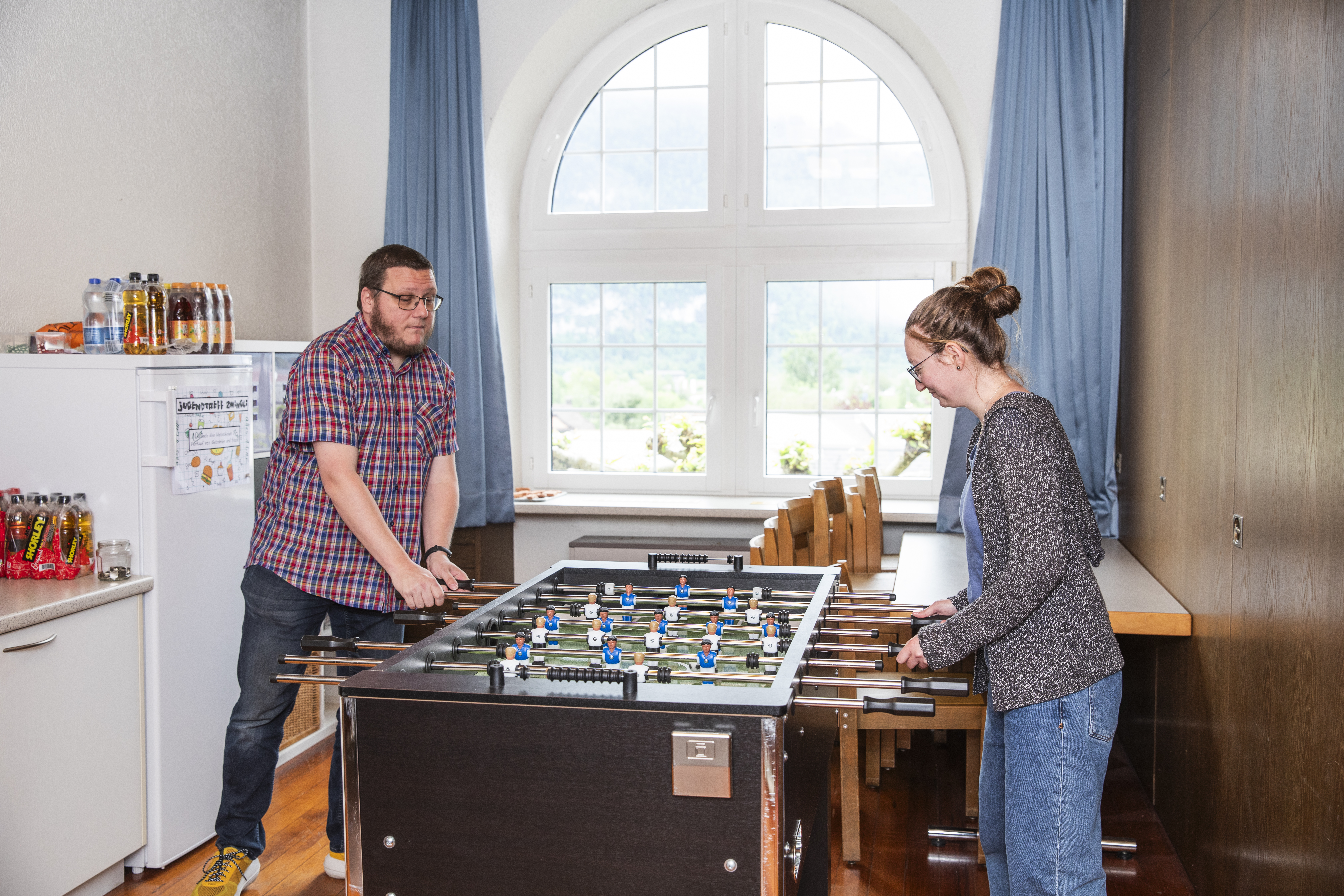 Mirco Meier und Janina Landolt, kirchliche Jugendarbeiter in der Seelsorgeeinheit Gaster, unterstützen Jugendliche auf ihrem Weg ins Erwachsenenleben. Im Jugendtreff haben sie auch ein Ohr, wenn ein Teenager einmal einfach über sein Hobby sprechen will.